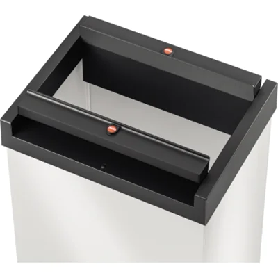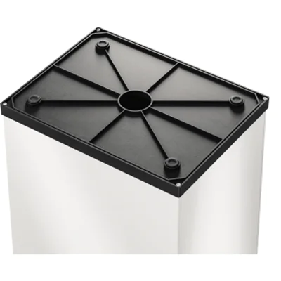 Die Großraum-Müllbox mit selbstschließendem Schwingdeckel. Die Schwingdeckelflügel können für eine dauerhafte Öffnung festgestellt werden. Mit Müllbeutel-Klemmrahmen. 4 Anti-Rutsch-Füße. Flach verpackt, aber schnell zusammengebaut.