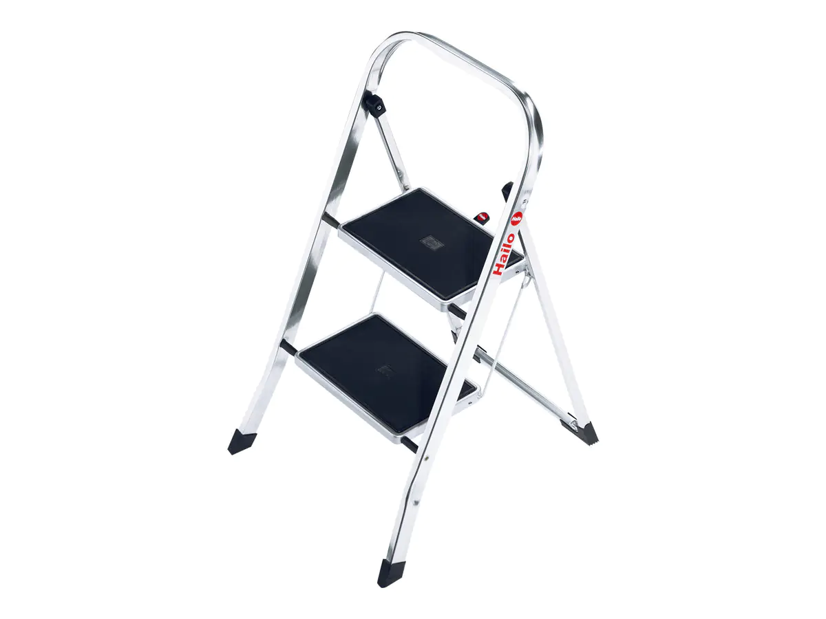 Hailo K30 ist ein leichter, flacher Alu-Klapptritt mit den großen Stahl-Stufen und Anti-Rutsch-Matten. Klemmen Sie sich den Klapptritt einfach unter den Arm und nehmen Sie ihn mit, wenn Sie mal im Keller die Regale putzen müssen. Oder im Lager aufräumen. Oder in der Garage die Birne auswechseln. Dieser kleine Kerl mit den großen Stahlstufen wiegt gerade mal zwischen 3,3 und 4,6 kg. Den tragen Sie mit links! Dabei macht er mit seinem eleganten Design aus Aluminium überall eine gute Figur. Und weil er ganz flach zusammengeklappt werden kann, ist auch das Verstauen nach getaner Arbeit kein Problem!
