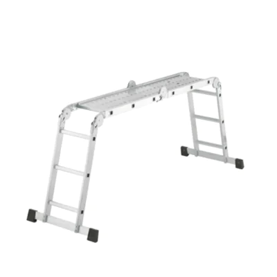 Die variable und vielseitig einsetzbare Aluminium-Universalleiter mit 6 Sicherheitsgelenken und Metall-Plattform. Arbeitsbühne, Anlege- und Stehleiter in einem Mit separater 2-teiliger, rutschfest geriffelter Metall-Plattform (143 x 30 cm) für bequeme und sichere Nutzung als Arbeitsbühne. Rutschfest geriffelte Sprossen. 2 stabile Querbalken mit standsicheren PVC-Füßen (Querbalken-Länge 77 cm). Breite abgerundete Holme (Holmquerschnitt 61 x 22 mm). Extrem feste Holm-Sprossen-Verbindung.