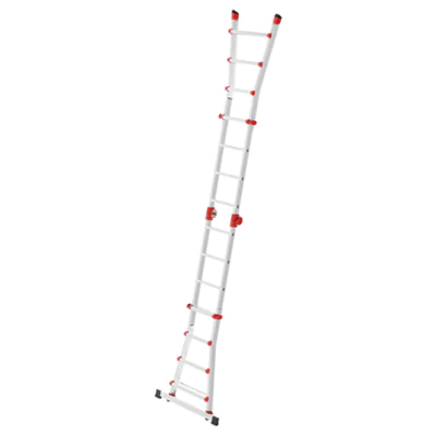 Verwendbar als Anlege- und Schiebeleiter, beidseitige Steh- und Treppenleiter. Höhe einstellbar durch die seitlichen Blockiergriffe der einzelnen Niveaus. 2 Sicherheitsgelenke (ent- und verriegelbar) für die Einstellung in Steh- und Anlegeleiter. Sicher, flexibel, variabel. Automatisches Blockiersystem. Sprosse für Sprosse höhenverstellbar. Verwendbar als Anlege- und Schiebeleiter, beidseitige Steh- und Treppenleiter. Höhe einstellbar durch die seitlichen Blockiergriffe der einzelnen Niveaus. 2 Sicherheitsgelenke (ent- und verriegelbar) für die Einstellung in Steh- und Anlegeleiter. Sicher, flexibel, variabel. Automatisches Blockiersystem. Sprosse für Sprosse höhenverstellbar.