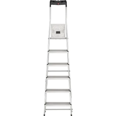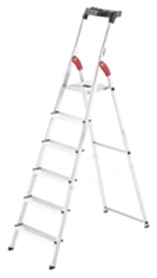 Hailo L60 StandardLine. Die praktische Alu-Sicherheits-Stehleiter mit Multifunktions-Schale und Gelenkschutz. Geeignet für HAILO EasyClix Wechselfüße (optionales Zubehör) Multifunktions-Ablageschale zur Ablage von Werkzeugen, Farbdosen oder Kleinteilen Holmführung für sicheren Stand und Kniefreiheit Rutschsichere HAILO EasyClix Basic-Füße. Patentierter HAILO Gelenkschutz DBP gesch. DBGM. Verzinkte Stahl-Plattform mit Anti-Rutsch-Riffelung. Sichere, HighTech-vernietete Holm-Stufenverbindung. Alu-Stufen mit Anti-Rutsch-Riffelung.