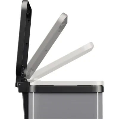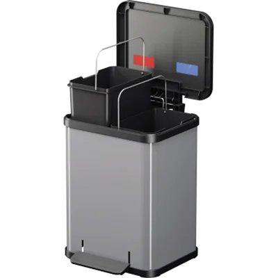 Der Tret-Mülltrenner mit doppeltem Einsatz für die 2-fach-Mülltrennung. Gedämpfter Deckel-Schließ-Mechanismus (Soft Close). 2 herausnehmbare Inneneimer. Ergonomisch breites Fußpedal aus Kunststoff. Innenliegende Tretmechanik. Inkl. Farbsticker zur Müllsorten-Kennzeichnung.
