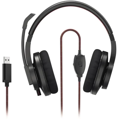 PC-Office-Headset mit flexiblem Mikrofonarm und USB-Anschluss. Gepolsterte Ohrmuscheln und Kopfbügel für perfekten Sitz auch über längere Zeiträume. Atmungsaktives Mesh-Material leitet Feuchtigkeit von der Haut weg und beugt Wärme und Schweißbildung vor. Metall-Komponenten verstärken und stabilisieren den Kopfbügel. Flexibler Mikrofonarm erlaubt eine angenehme und optimale Positionierung. Mute-Taste erlaubt die unverzügliche Stummschaltung des Mikrofons. Kabelfernbedienung zur bequemen, stufenlosen Lautstärkeregelung. Einseitige Kabelführung für bequemes Tragegefühl ohne Kabelsalat. Eleganter und flexibler Gewebemantel für zusätzlichen Knickschutz. Extra langes Kabel für mehr Flexibilität und Bewegungsfreiheit und einen unkomplizierten Anschluss an PC oder Notebook.