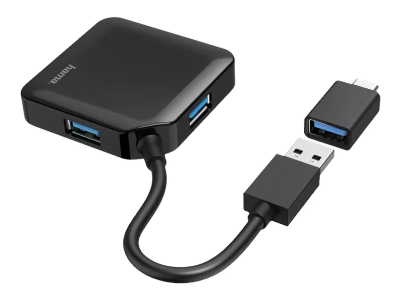 - Mit zusätzlichem USB-C-Adapter kann der Hub auch für Geräte mit USB-C-Schnittstelle verwendet werden
