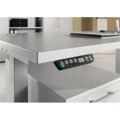Mit Memoryschalter. Elektisch stufenlos höhenverstellbar. Elektroantrieb 2-stufig, 2 Motoren. Tragkraft 80 kg dynamisch, 120 kg statisch. Anlieferzustand zerlegt. Einfache Montage.