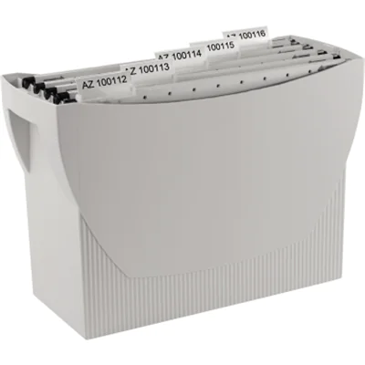 - Großes Volumen, aber raumsparend - integrierter Köcher für Stifte und Marker - passend für 20 Hängemappen oder 3 Ordner (A4 50 mm breit) - ideale Handhabung durch praktische Tragegriffe