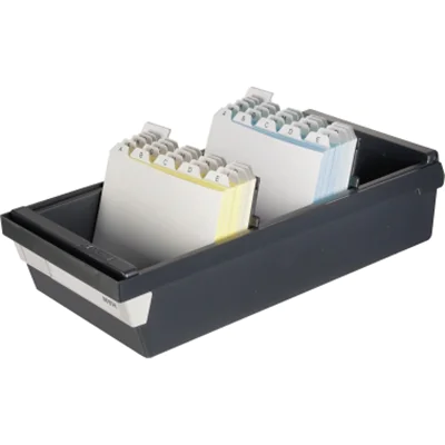 - optimales Beschriftungsfeld, möbelschondende Gummifüße, inkl. 2 Stützplatten mit verschiebbarem Sichtreiter - Verwendung für Kartenformat: A6 quer