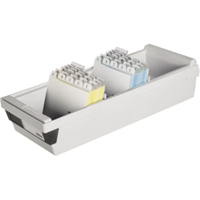 - optimales Beschriftungsfeld, möbelschondende Gummifüße, inkl. 2 Stützplatten mit verschiebbarem Sichtreiter - Verwendung für Kartenformat: A7 quer