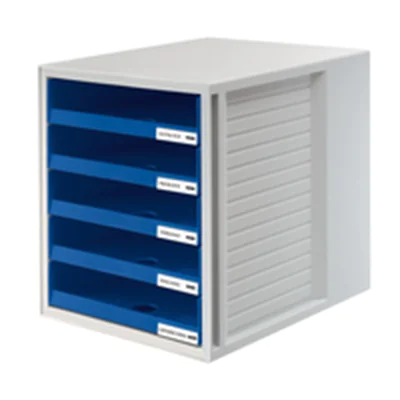 HAN Schubladenbox 1401-14 DIN A4 5Schubfächer PS blau/lichtgrau