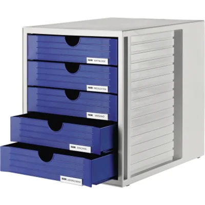 HAN Schubladenbox Systembox 1450-14 DIN C4 5Schubfächer bl