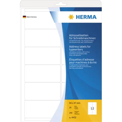 HERMA - Permanenter Klebstoff - weiß - 94 x 47 mm 240 Etikett(en) (20 Bogen x 12) Adressetiketten