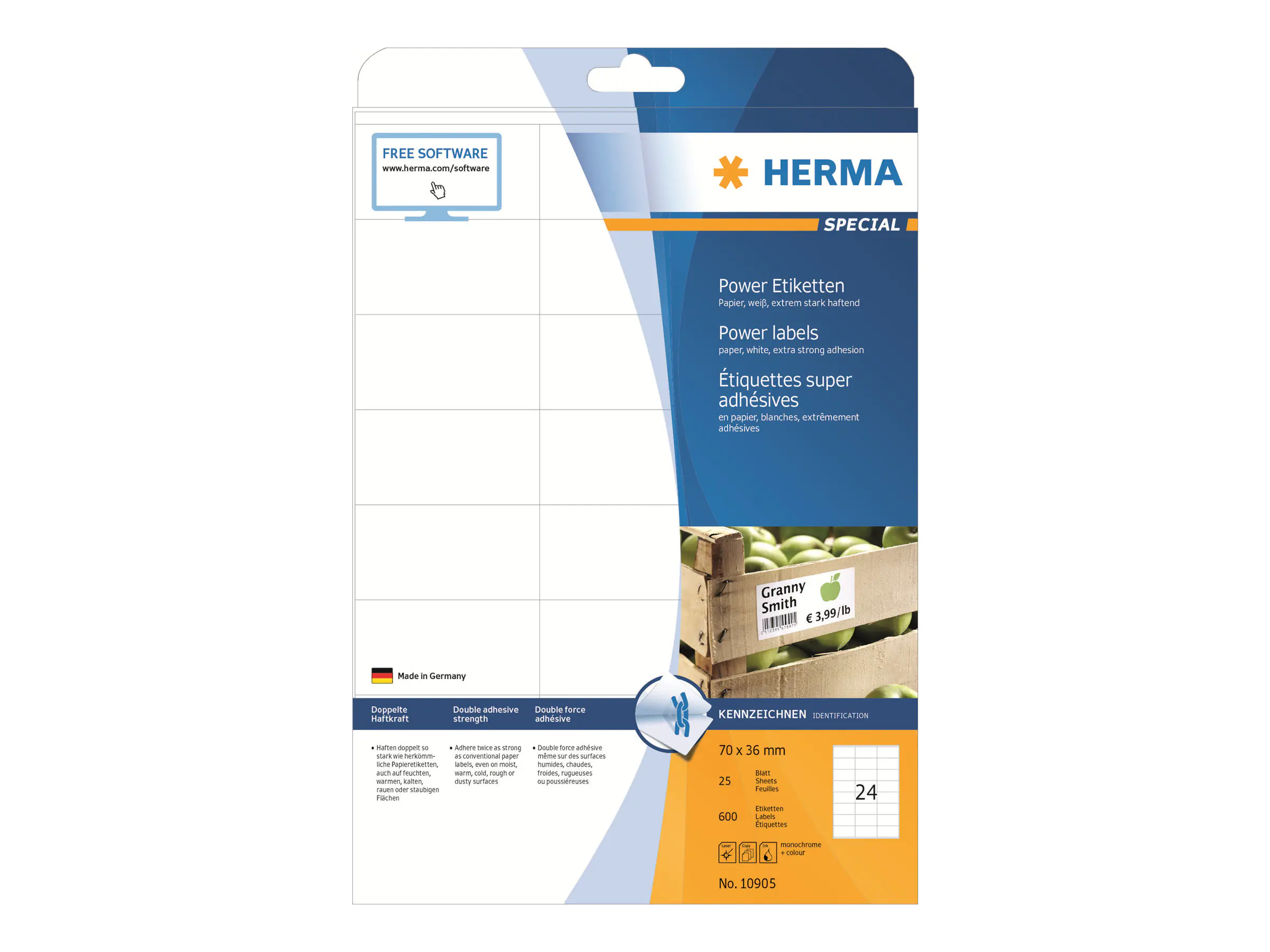 HERMA Special - Papier - matt - extra stark selbstklebend - weiß - 70 x 36 mm 600 Etikett(en) (25 Bogen x 24) Etiketten