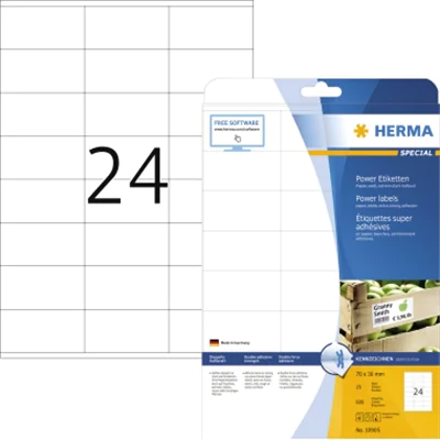 HERMA Special - Papier - matt - extra stark selbstklebend - weiß - 70 x 36 mm 600 Etikett(en) (25 Bogen x 24) | ||||