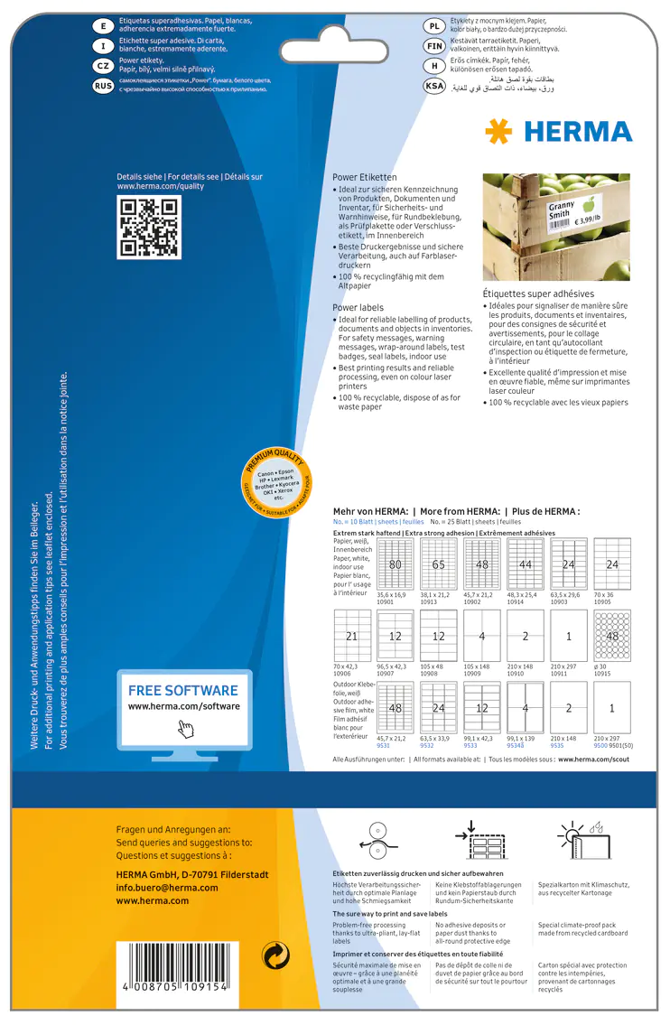 Etiketten für jeden Zweck: Das Sortiment von Herma ist einzigartig in seiner Vielfalt. Es reicht von universellen Büroetiketten für Adressen und Beschriftungen über Spezialetiketten für den Außenbereich oder hitzebeständige Anwendungen bis hin zu hochwertigen Foto-Etiketten. Herma-Etiketten zeichnen sich durch ihre starke Klebkraft, gestochen scharfe Druckergebnisse und einfache Handhabung aus.