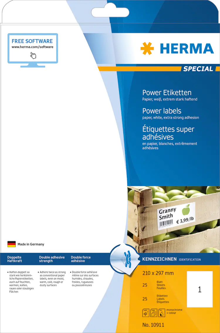 - Power Etiketten, extrem stark haftend, auf A4-Blättern