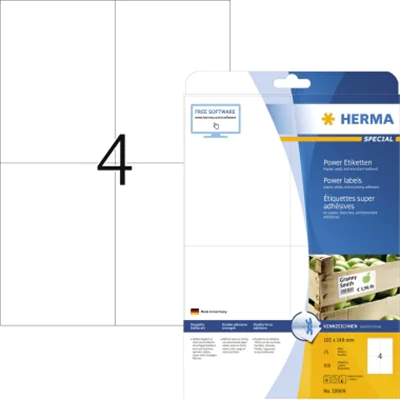 Beschreibung | HERMA Special - Papier - matt - extra stark selbstklebend - weiß - A6 (105 x 148 mm) 100 Etikett(en) (25 Bogen x 4) Etiketten | |||