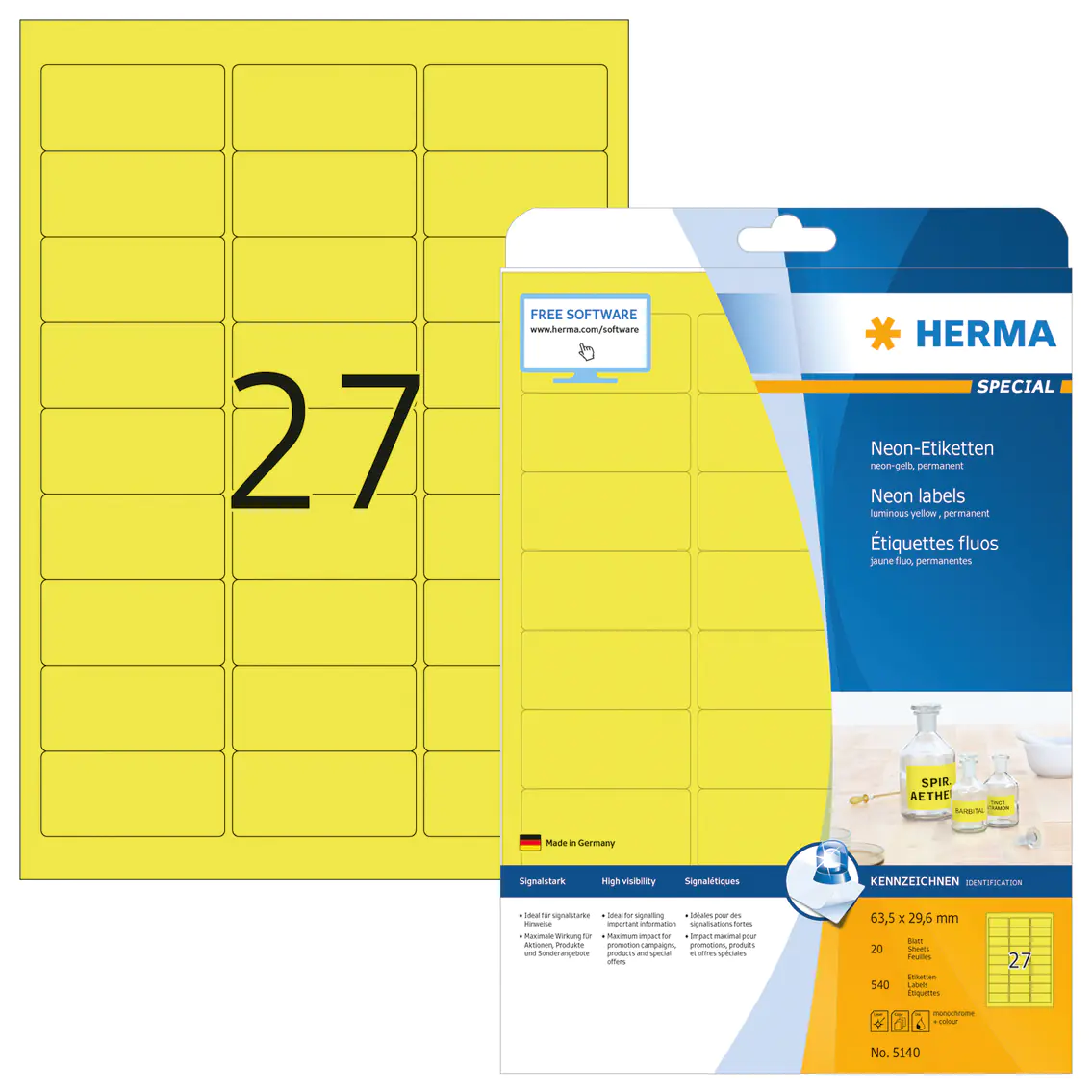 HERMA Etikett 5140 63,5x29,6mm neongelb 540 St./Pack.
