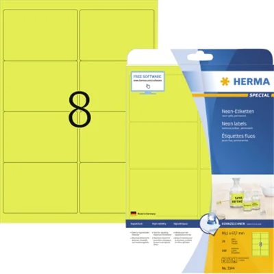 HERMA Special - Papier - matt - permanent selbstklebend - Leuchtendes Gelb - 99.1 x 67.7 mm 160 Etikett(en) (20 Bogen x 8) fluoreszierende Etiketten