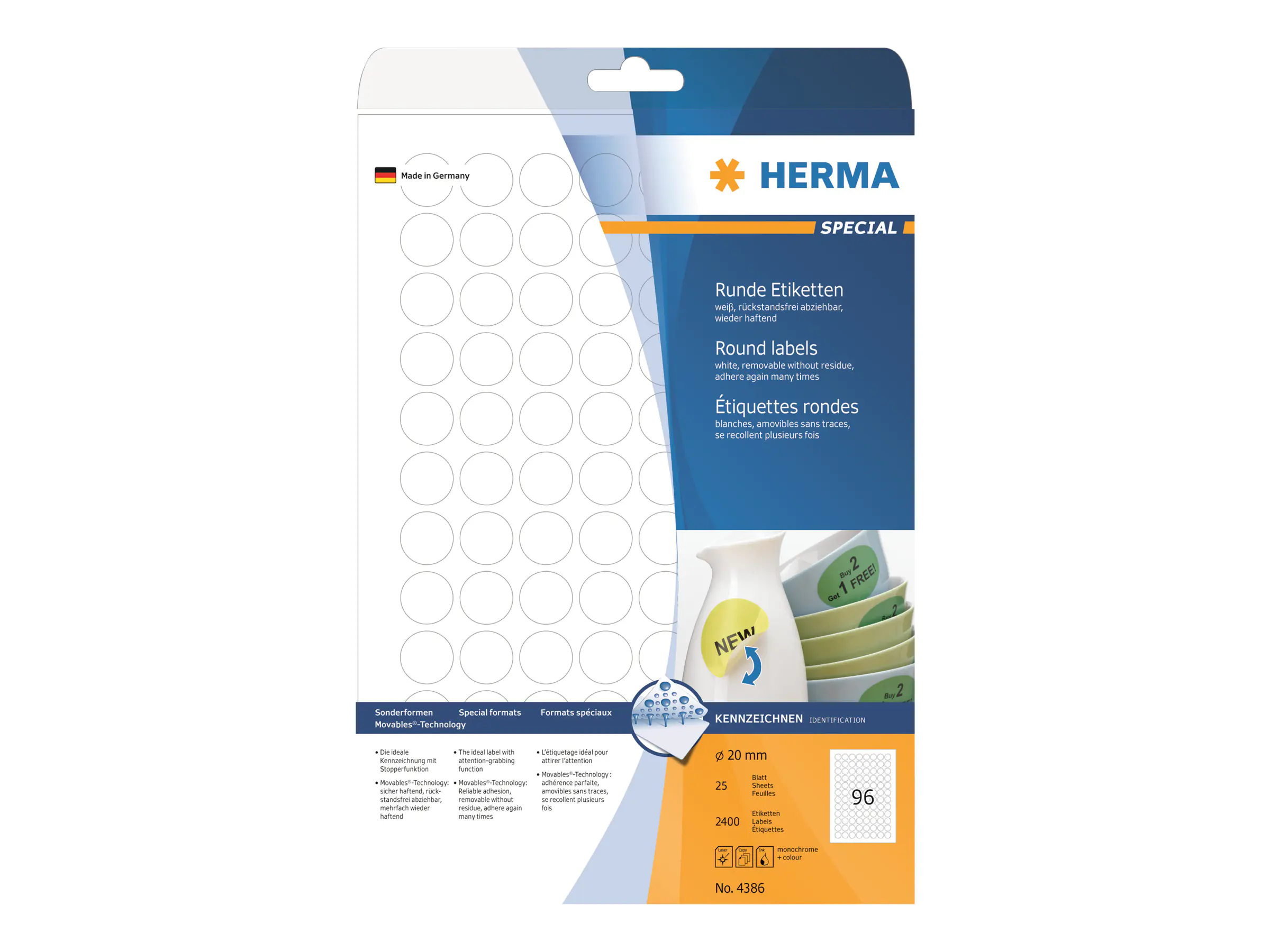 HERMA Etikett Movables 4386 20mm rund weiß 2.400 St./Pack.