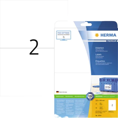 | HERMA Premium - Papier - matt - permanent selbstklebend - weiß - 210 x 148 mm 50 Etikett(en) (25 Bogen x 2) | ||||