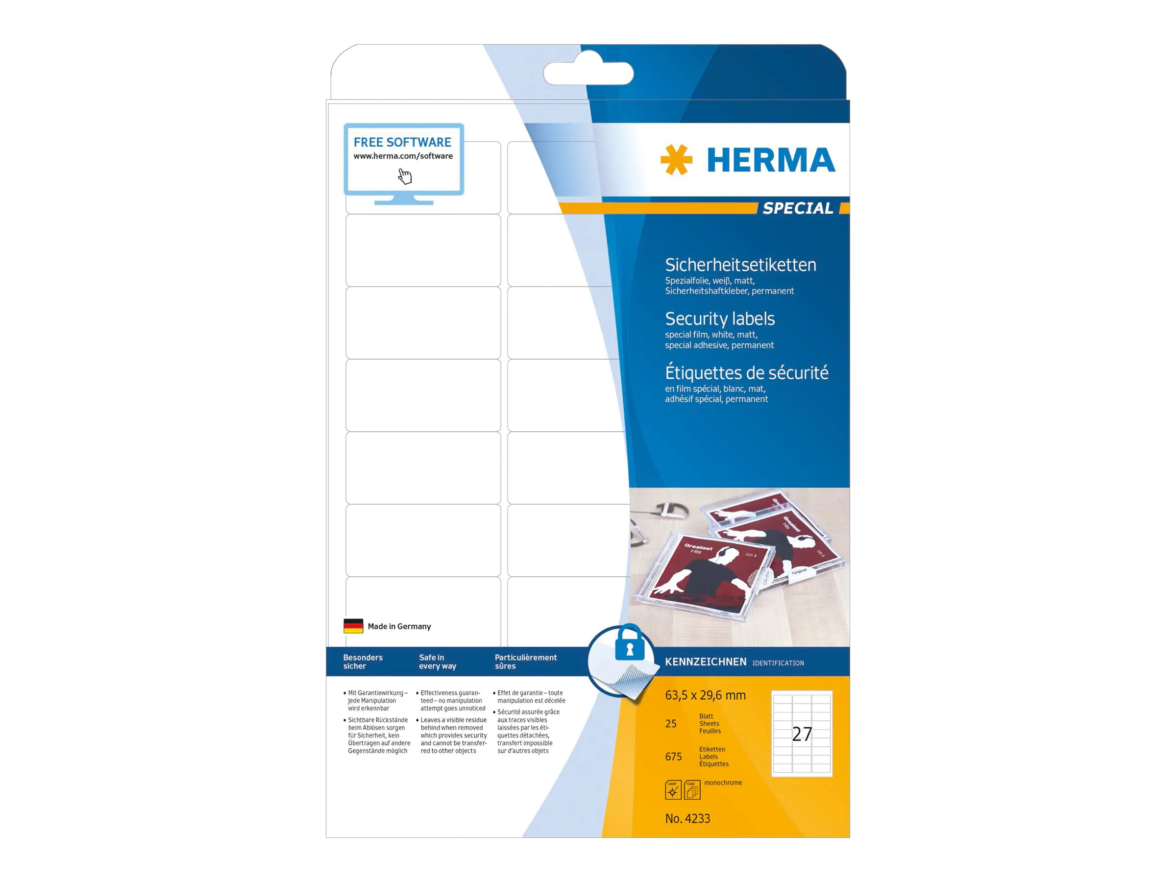 HERMA Etikett Sicherheit 4233 63,5x29,5mm weiß 675 St./Pack.