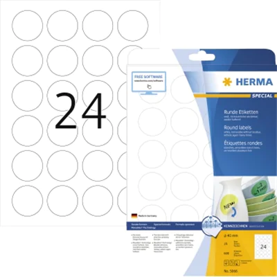 HERMA Special - Papier - matt - selbstklebend, entfernbarer Klebstoff - weiß - 40 mm rund 600 Etikett(en) (25 Bogen x 24) | ||||