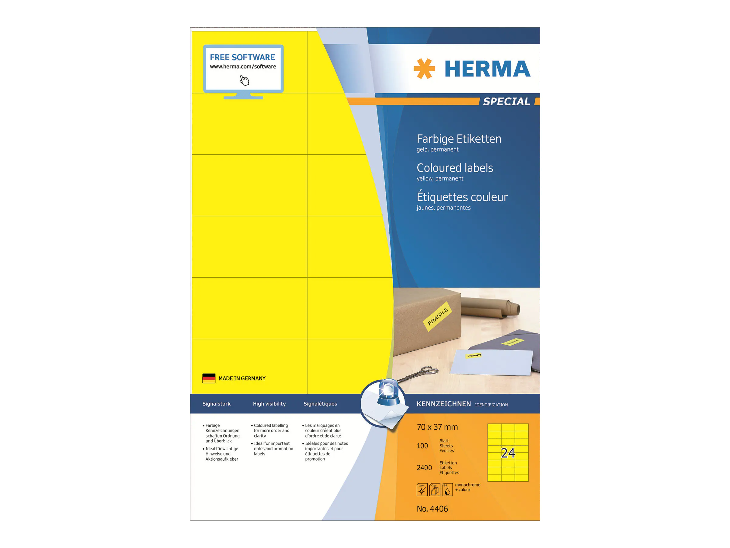HERMA Etikett SuperPrint 4406 70x37mm gelb 2.400 St./Pack.