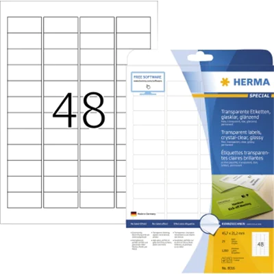 | HERMA Selbstklebend - durchsichtig - 21.2 x 45.7 mm 1200 Etikett(en) (25 Bogen x 48) | ||||