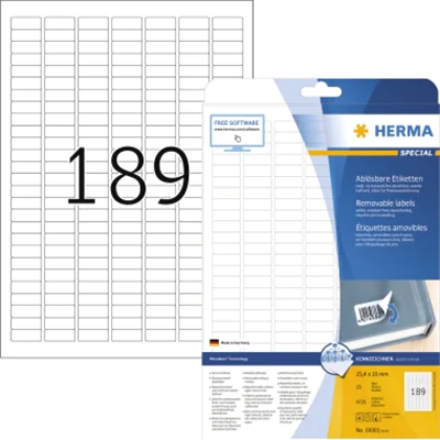 HERMA Special - Papier - matt - selbstklebend, entfernbarer Klebstoff - weiß - 25.4 x 10 mm 4725 Etikett(en) (25 Bogen x 189) | ||||
