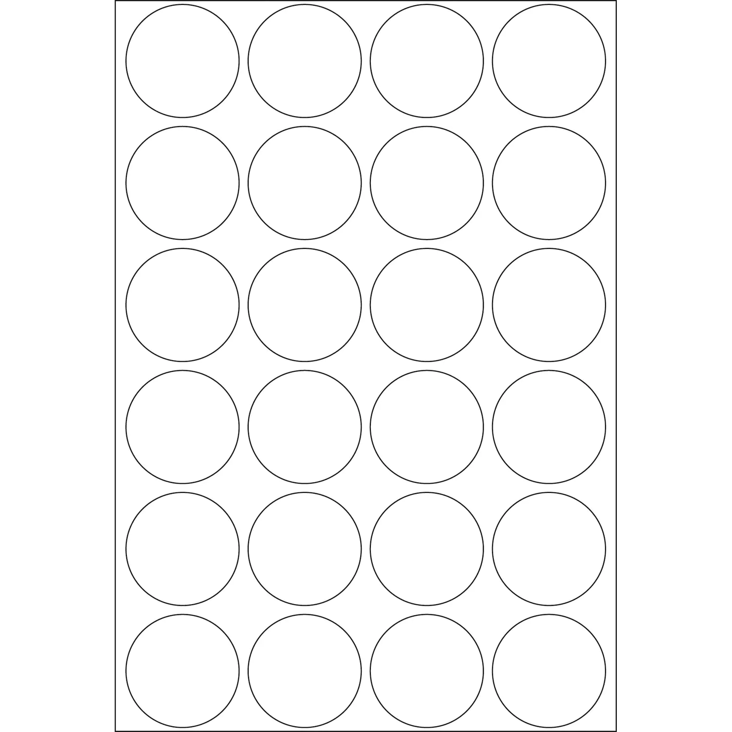 Beschreibung | HERMA Permanenter Klebstoff - weiß - 25 mm rund 768 Etikett(en) (32 Bogen x 24) Etiketten | |||