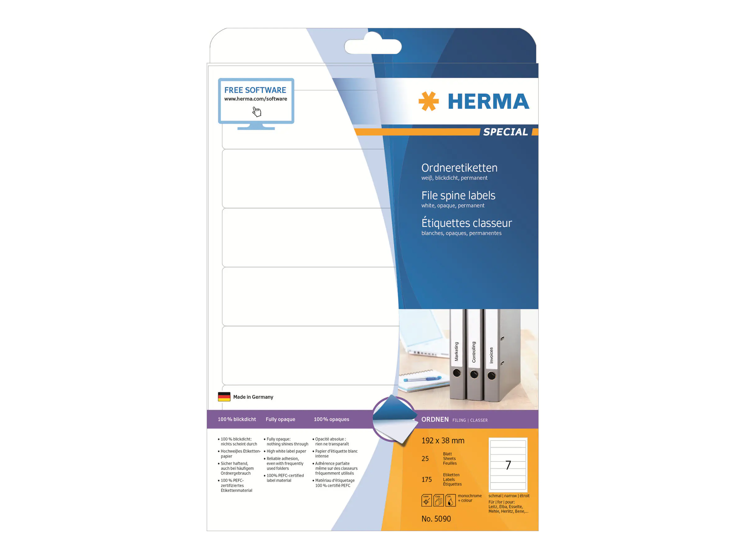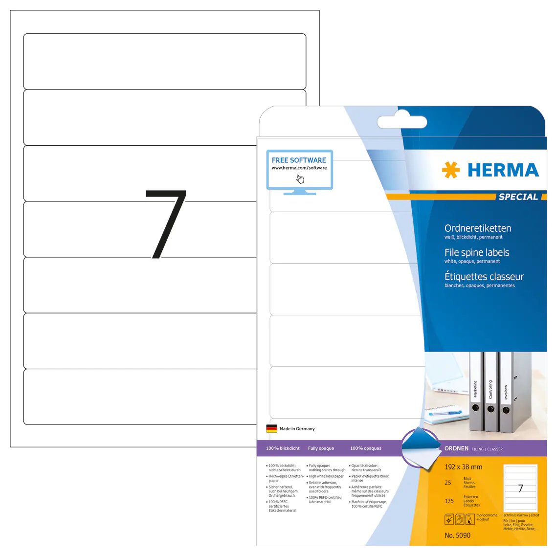 HERMA Special - Papier - matt - permanent selbstklebend - weiß - 192 x 38 mm 175 Etikett(en) (25 Bogen x 7) undurchsichtige Aktenetiketten