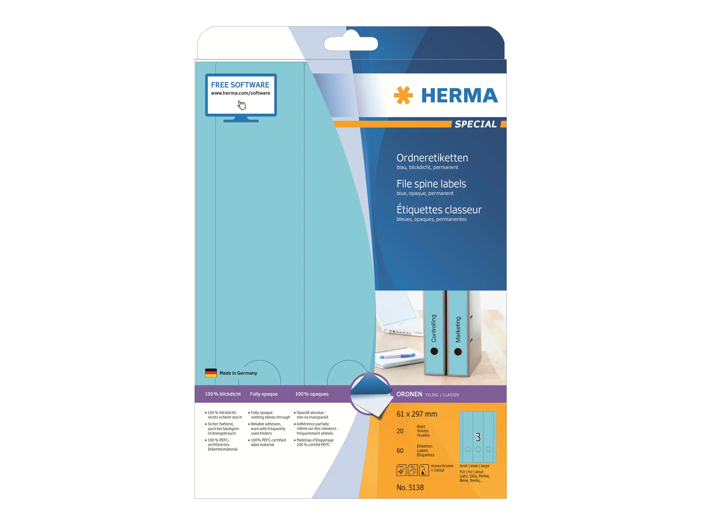 HERMA Ordneretikett 5098 192x61mm sk blau 80 St./Pack.
