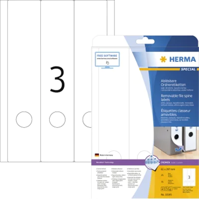 HERMA Special - Papier - matt - selbstklebend, entfernbarer Klebstoff - weiß - 61 x 297 mm 75 Etikett(en) (25 Bogen x 3) undurchsichtige Aktenetiketten