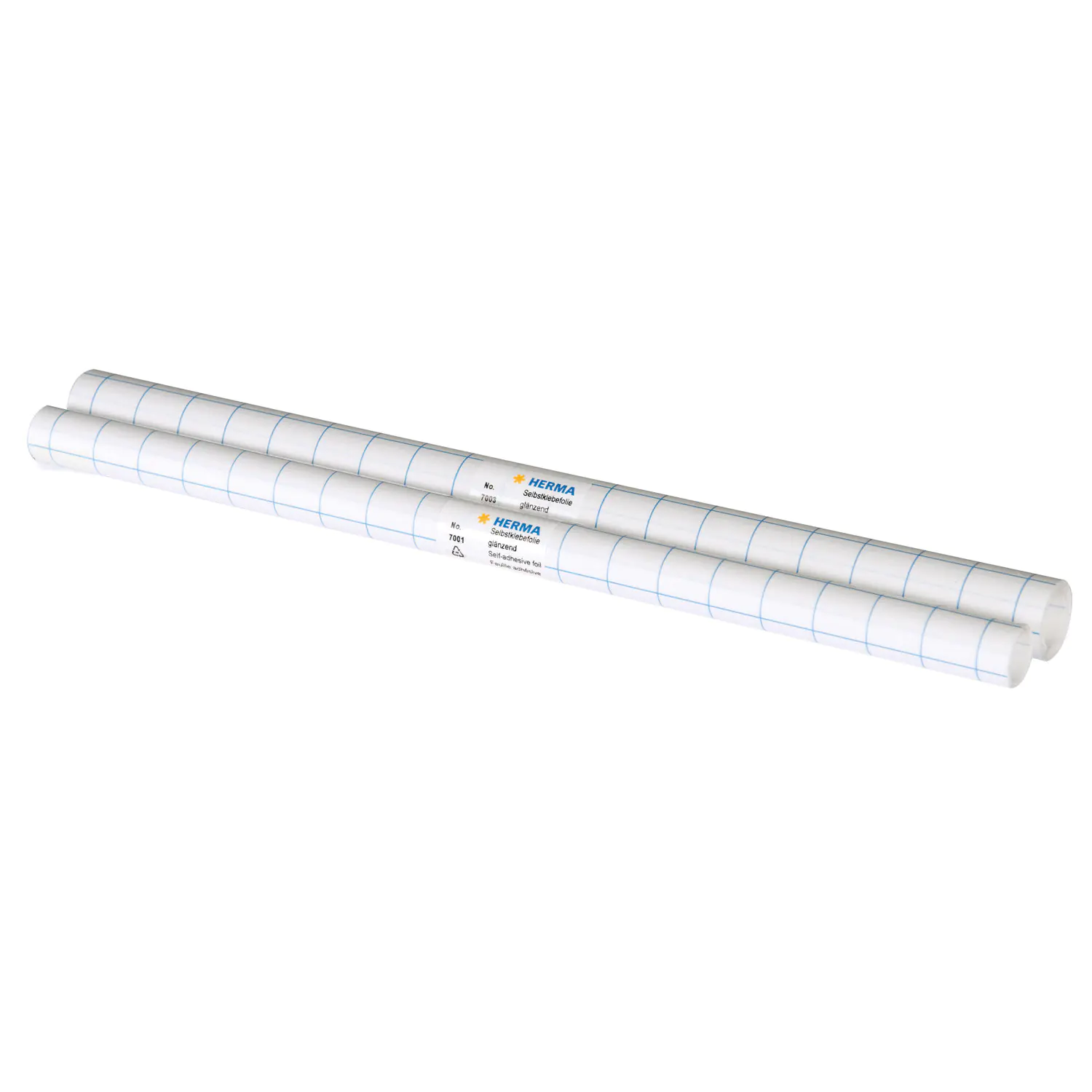 HERMA Buchschutzfolie, selbstklebend, 400 mm x 15 m transparent, glänzende Folie aus PP, Gitterlinien auf dem (7015), Lieferzeit in Werktagen: 1