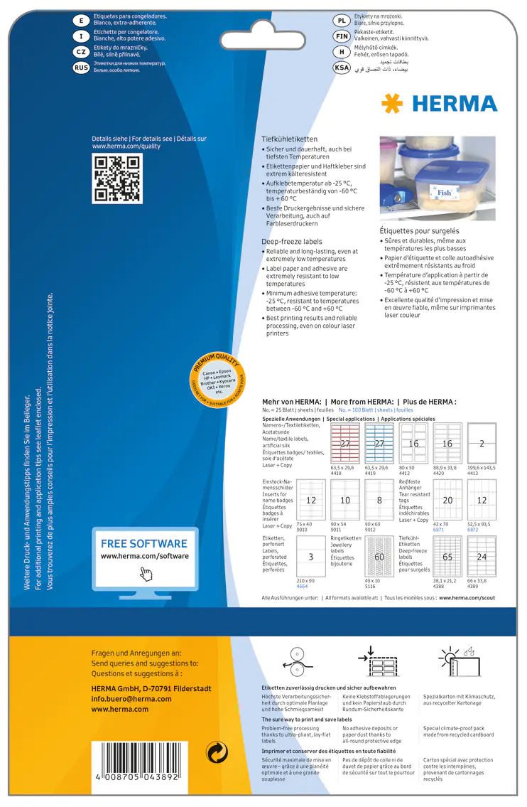 Produktbeschreibung | HERMA Special - permanent selbstklebende, matte Tiefkühletiketten aus Papier - 600 Etikett(en) - 66 x 33.8 mm | |||