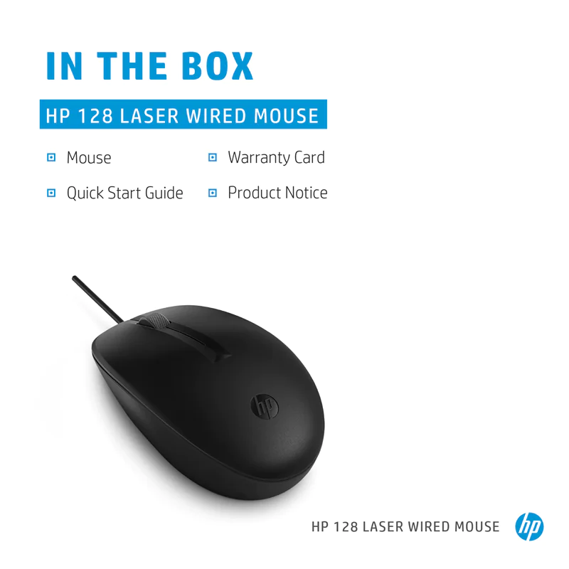 HP 128 - Maus - Laser - kabelgebunden - Schwarz | ||||