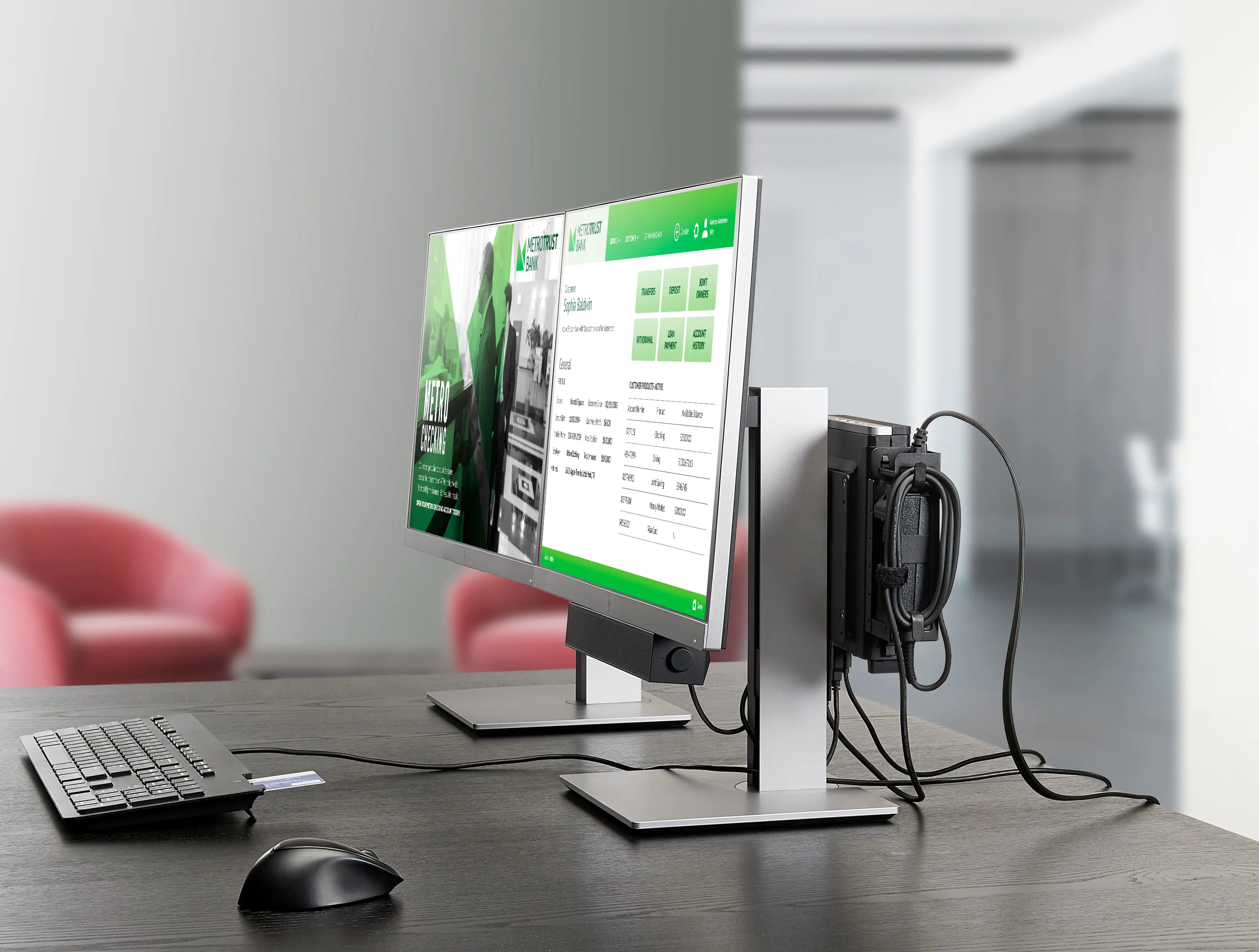- Nutzen Sie ein Smart-Card-Lesegerät, das sich im Blickfeld oberhalb der Tastatur befindet, damit Sie nicht vergessen, die Karte zu entnehmen. Kompatibilität mit den Smart-Card-Klassen A, B und C helfen, Hacker-Angriffe und Firmware-Änderungen über die Tastatur zu verhindern.