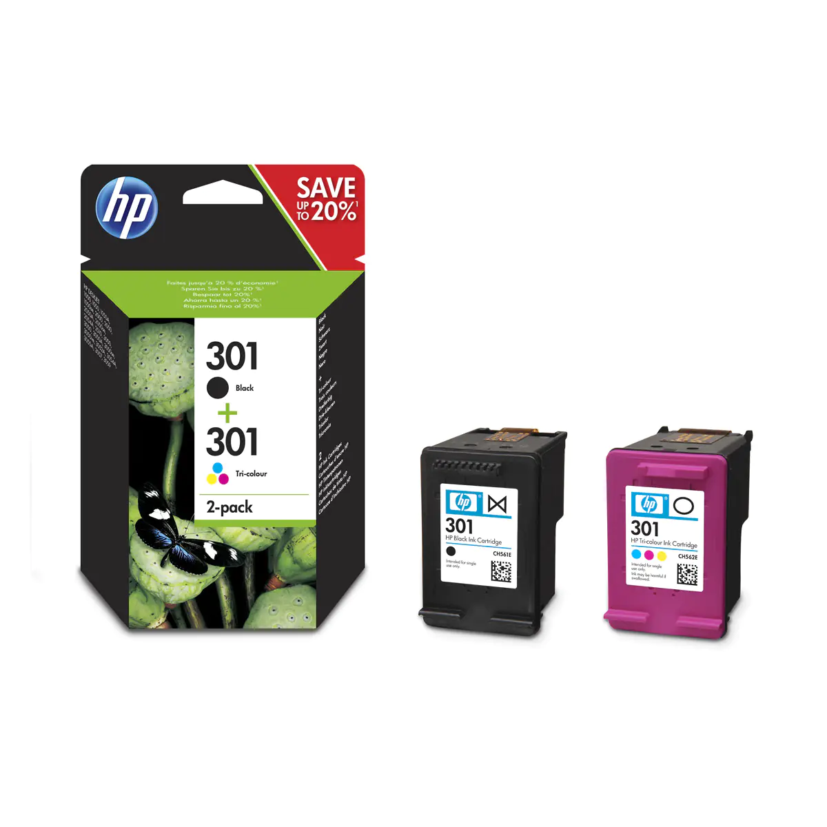 HP 301 - 2er-Pack - Schwarz, Farbe (Cyan, Magenta, Gelb) - Original - Tintenpatrone - für Deskjet 1050A J410, 1051A J410, 10XX, 10XX J410, 15XX, 2000, 2050 J510, 2050A J510, 2054A J510, 25XX, 3000, 3050 J610, 3050A J611, 3052A J611, 3054A J611, 3055A J611, 3057A J611, 3059A J611, 3510; Envy 450X, 553X; Officejet 26XX, 46XX
