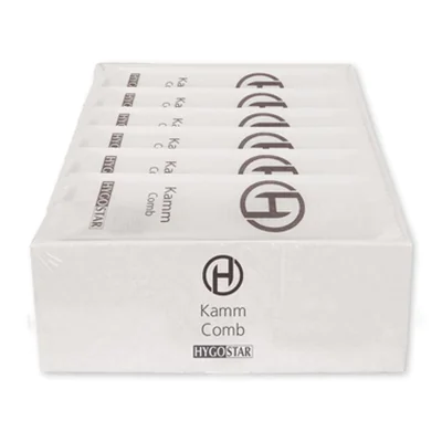 Zur klassischen Ausstattung eines Hotelbads gehört auch ein Kamm. Die Kämme von Hygostar sind speziell für Hotels als Gästekamm entwickelt worden. Sie sind einzeln verpackt und können so hygienisch an jeden Gast ausgegeben werden. Die Kämme sind zweiseitig mit unterschiedlichen Zinken ausgestattet – eine feine und eine gröbere Seite. Vorteil für Händler: Alle Kämme sind im attraktiven Tray für Ihr Verkaufsregal verpackt. Das zeitlose und reduzierte Design passt immer und zeichnet die gesamte Hotellinie von Hygostar aus. Entdecken Sie hier im Shop ein breites Sortiment an Kosmetik- und Pflegeprodukten für Hotels und Hotelgäste.