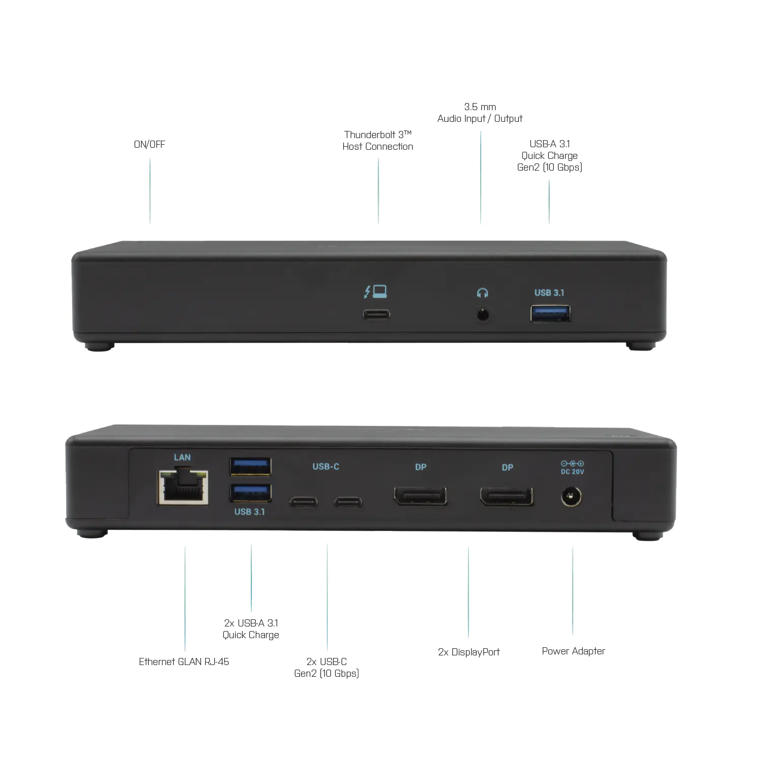 Die Thunderbolt 3-Technologie der zweiten Generation bedeutet, dass die Dockingstation jetzt nicht nur mit Thunderbolt 3-Anschlüssen, sondern auch mit USB-C kompatibel ist. Dies macht sie zu einer flexiblen Lösung für Firmen und Benutzer, die Laptops und Tablets mit unterschiedlichen Anschlüssen betreiben.