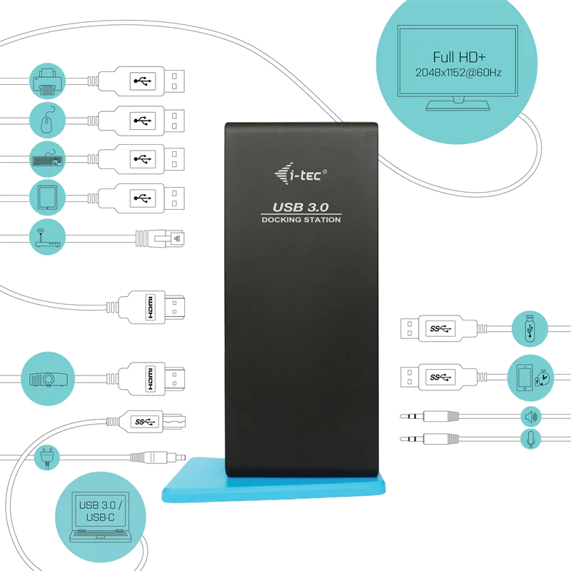 Produktbeschreibung | i-Tec USB 3.0/USB-C Dual HDMI Docking Station - Dockingstation - USB 3.0 - 2 x HDMI - GigE | |||