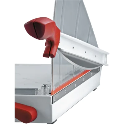 Automatische Pressung für präzises, komfortables Schneiden. EASY_LIFT - der innovative Lösehebel zum Anheben der Pressung für eine einfache Schnittgutentnahme. Großer Schneidetisch in stabiler Ganzmetall-Konstruktion. Nachschleifbare Messergarnitur aus "Solinger Messerstahl". Stabiles Messerlager aus Aluminiumguss und zweifach gelagerte Messerachse für präzise Schnitte. Transparenter Messerschutz mit integriertem Schnittandeuter (zeigt auf der gesamten Schnittlänge gut sichtbar die Schnittlinie an). Präziser Seitenanschlag aus Metall mit stufenlos arretierbarem Rückanschlag. Maßskala in mm/Zoll. Papierformate von DIN A3 bis DIN A6 und amerikanische Papierformate, sowie verschiedene Winkelmarkierungen auf dem Schneidetisch. Gummifüße für sicheren Stand. Attraktives, funktionales Design. "GS"-Prüfsiegel. Markenqualität "Made in Germany".