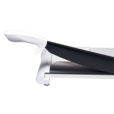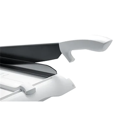 Attraktiver Hebelschneider - ideal auch für Fotoausdrucke vom PC. Lasergeschnittenes Universalmesser und Schnittschiene aus hochwertigem Spezialstahl mit Antihaftbeschichtung. Transparente Anpressschiene mit Übergriffschutz und integriertem Präzisions-Schnittandeuter. Stufenlos verstellbarer Rückanschlag. Papierformate von DIN A4 bis DIN A6 und gängige Fotoformate auf dem Schneidetisch. Zwei Papieranlagen. Rückanschlag (kann auf vorderer oder hinterer Papieranlage platziert werden).