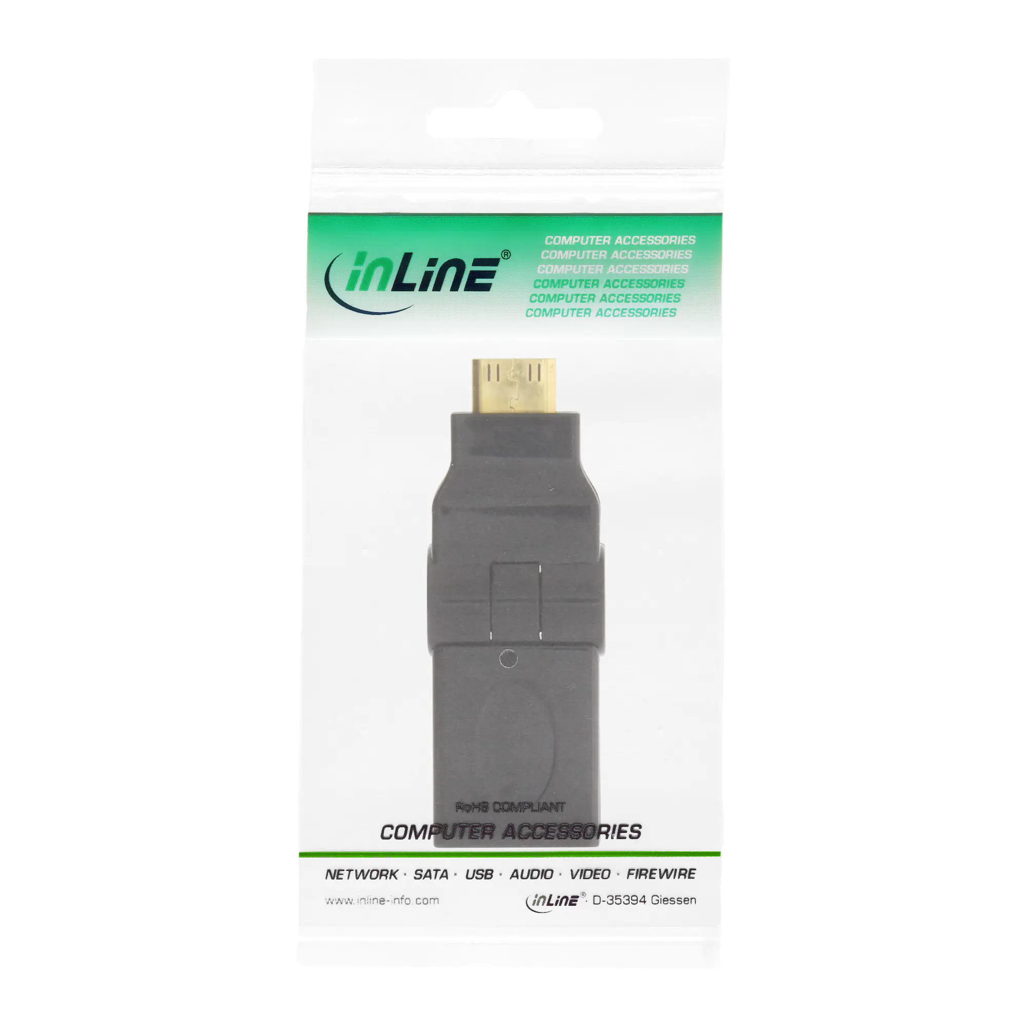 InLine - HDMI-Adapter - 19 pin mini HDMI Type C männlich zu HDMI weiblich - Schwarz - 180° drehbarer Stecker