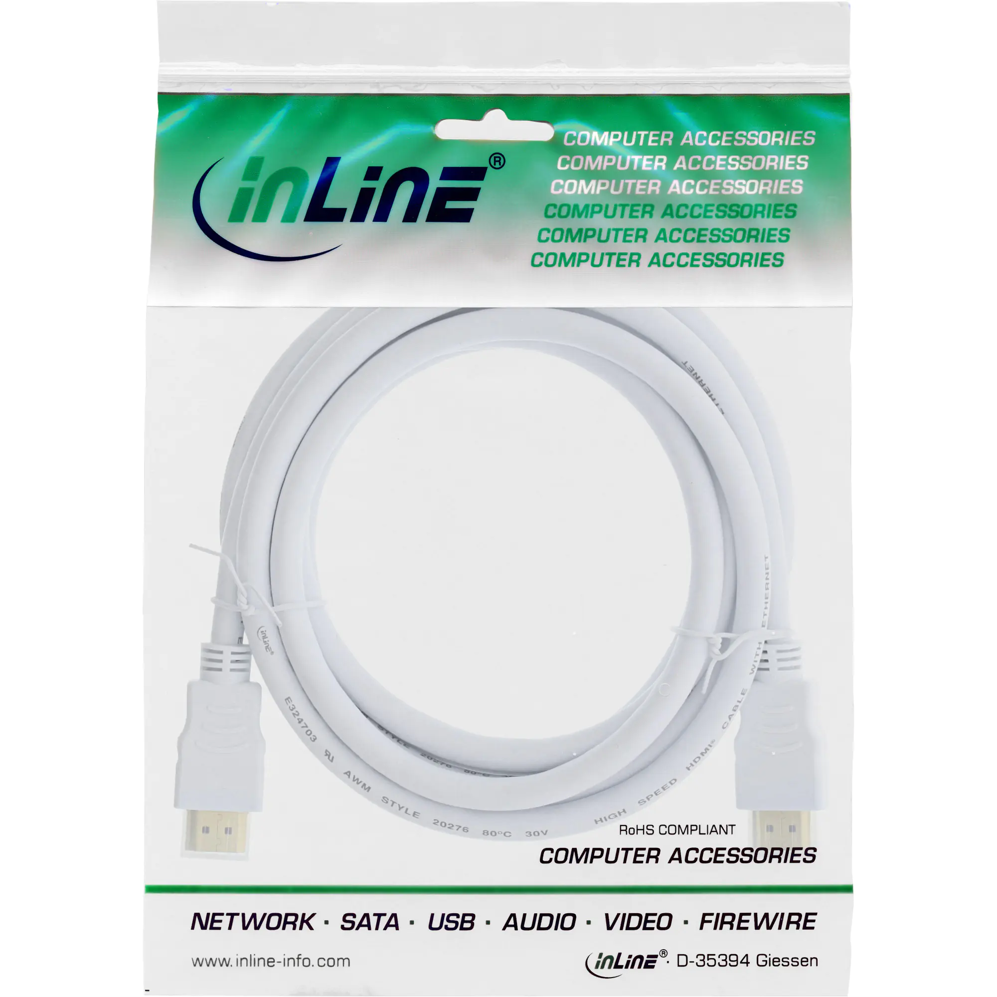 InLine High Speed - HDMI-Kabel mit Ethernet - HDMI männlich zu HDMI männlich - 1.5 m - Dreifachisolierung - weiß - 4K Unterstützung