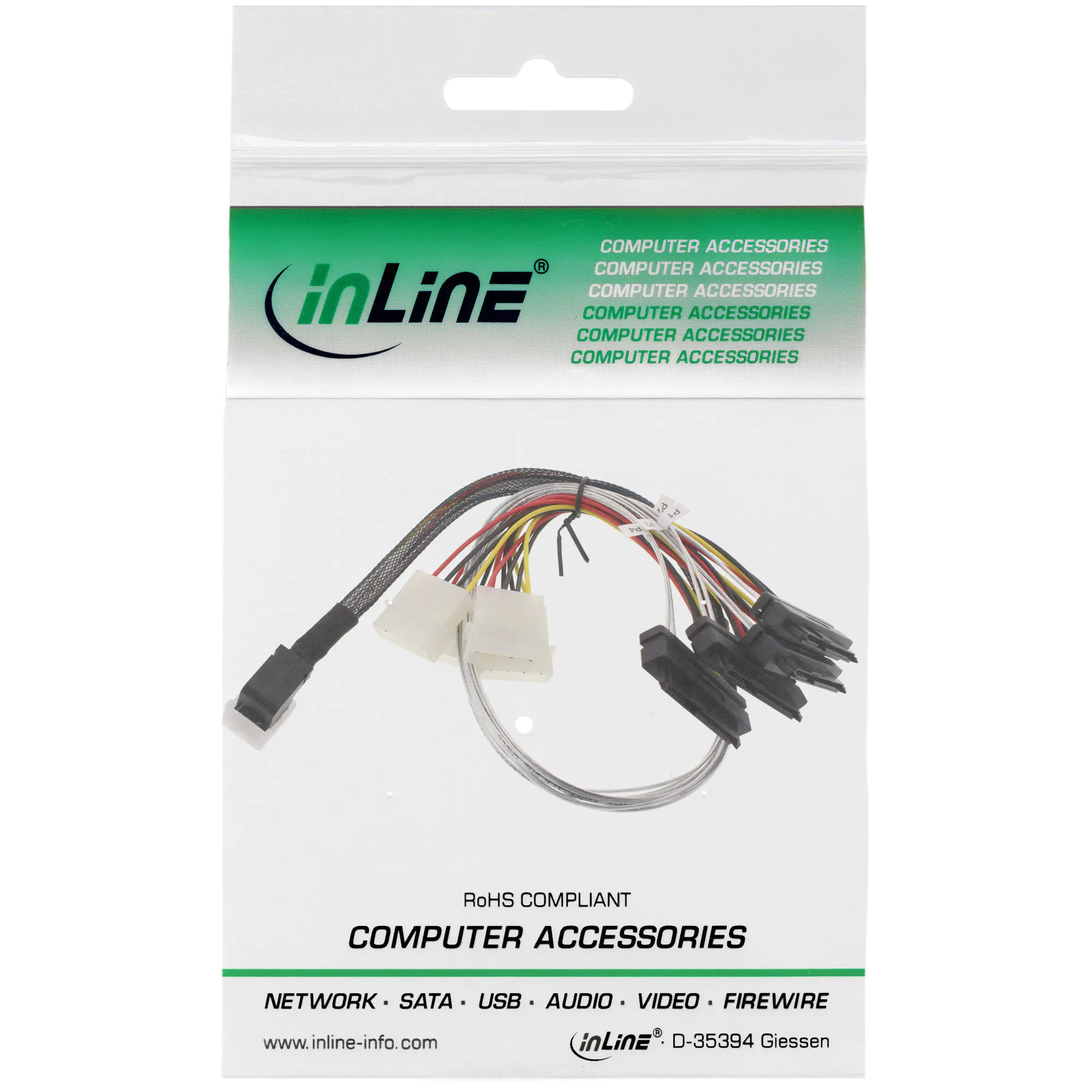 InLine - Internes SAS-Kabel - gerade durchgeführt - 4-Lane - 4x Mini SAS HD (SFF-8643) zu interne Stromversorgung, 4-polig, interne SAS, 29-polig (SFF-8482) - 50 cm - 90° Stecker - Schwarz
