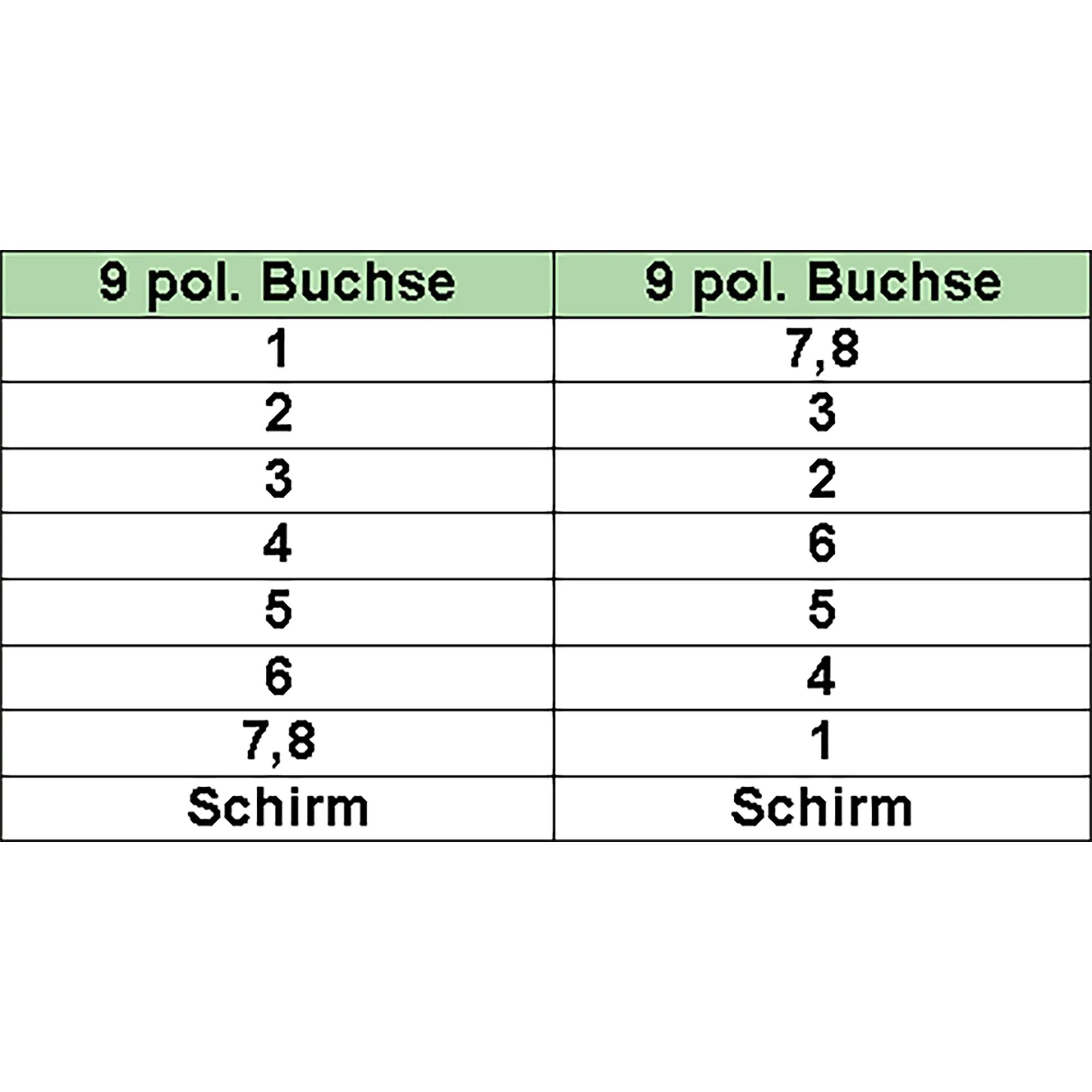 HINWEIS: Achten Sie auf die PIN-Belegung.• Sub-D 9-polige Buchse auf Sub-D 9-polige Buchse