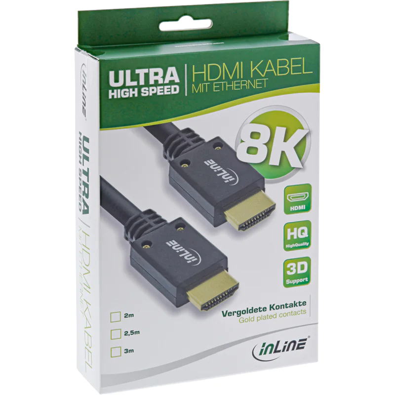 InLine - Premium Highspeed - HDMI-Kabel mit Ethernet - HDMI männlich zu HDMI männlich - 3 m - Dreifachisolierung - Schwarz - 8K Unterstützung