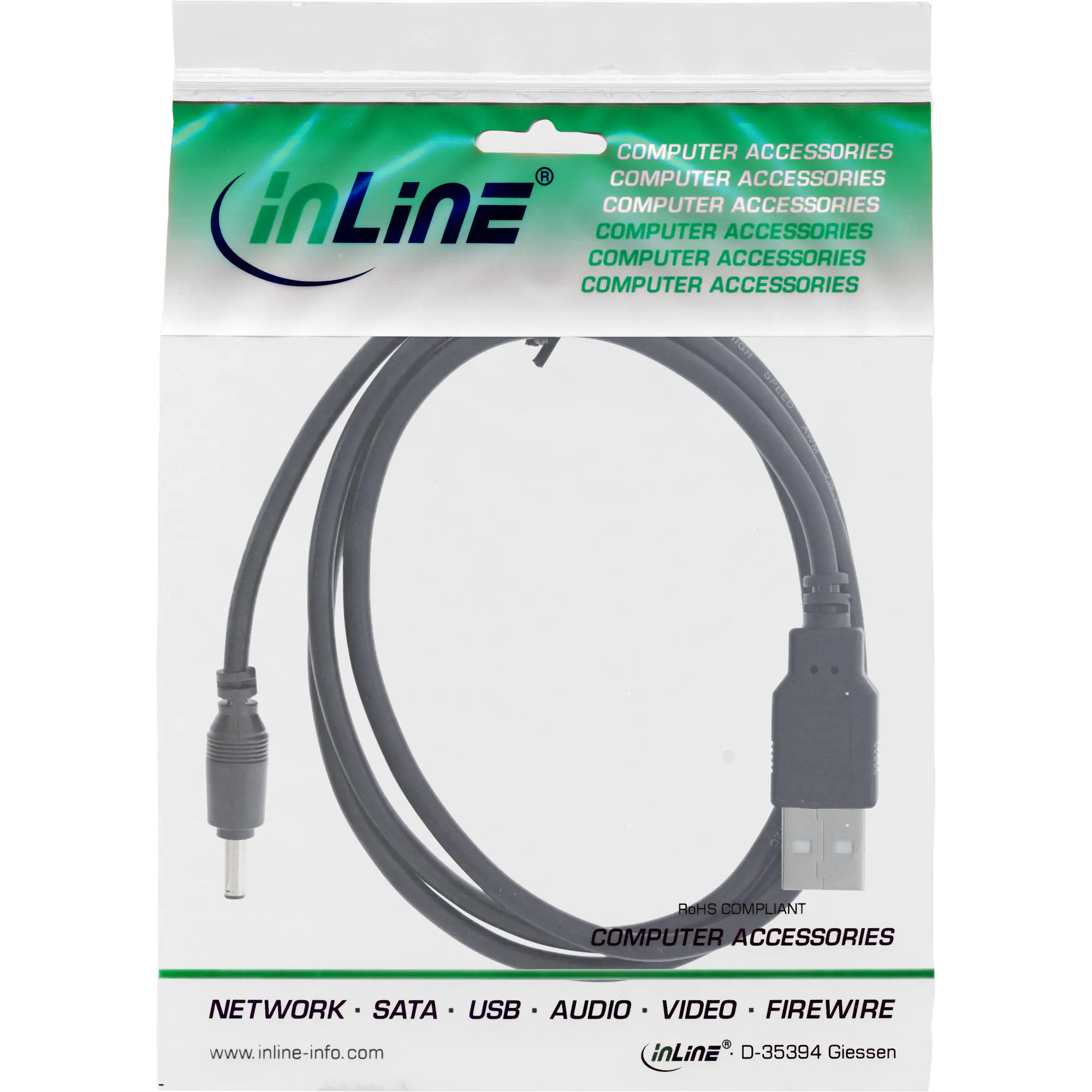 InLine USB DC Stromadapterkabel A Stecker zu 5.5x2.50mm Hohlstecker schwarz