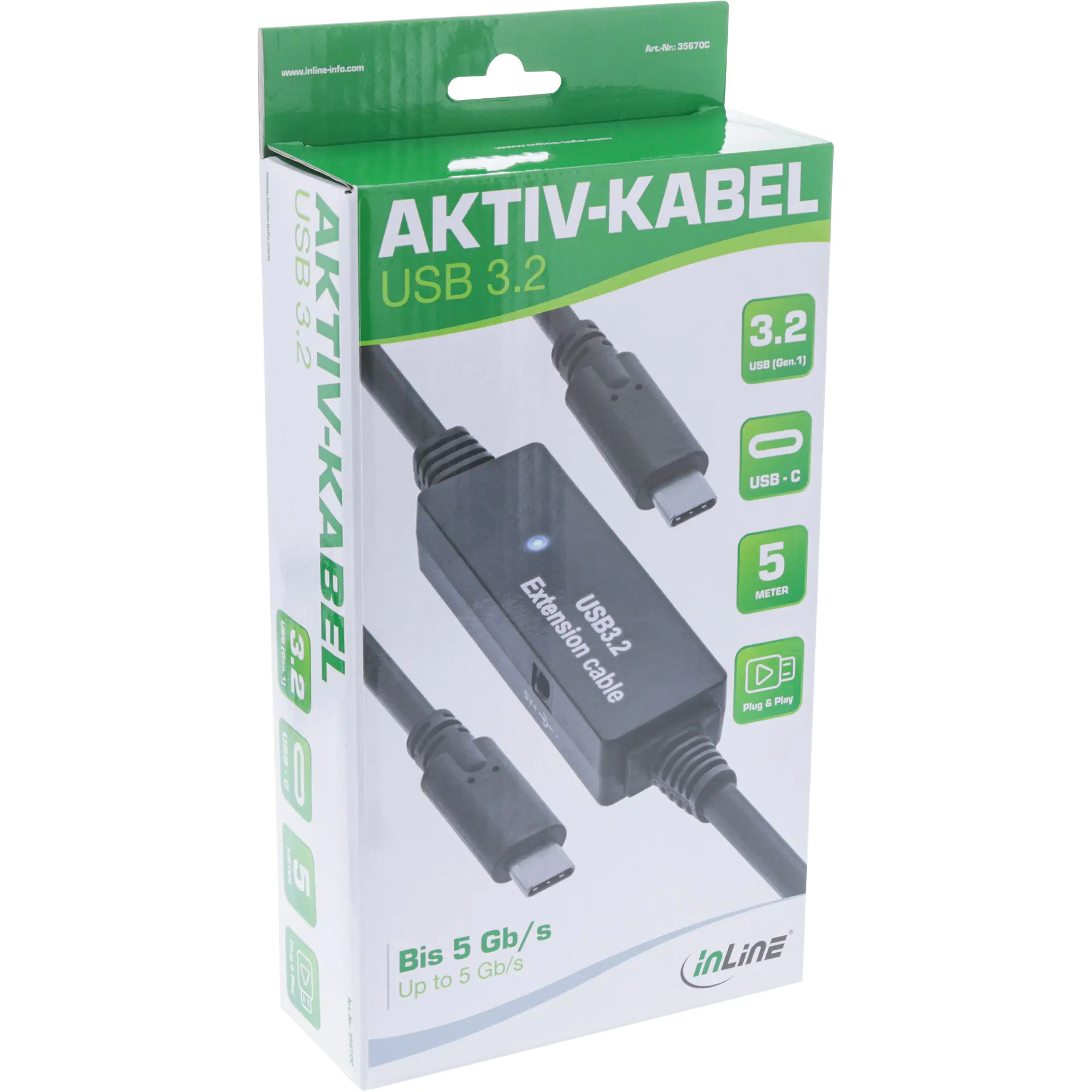 InLine - USB-Kabel - 24 pin USB-C (M) zu 24 pin USB-C (M) - USB 3.2 Gen 1 - 5 m - aktiv - Schwarz